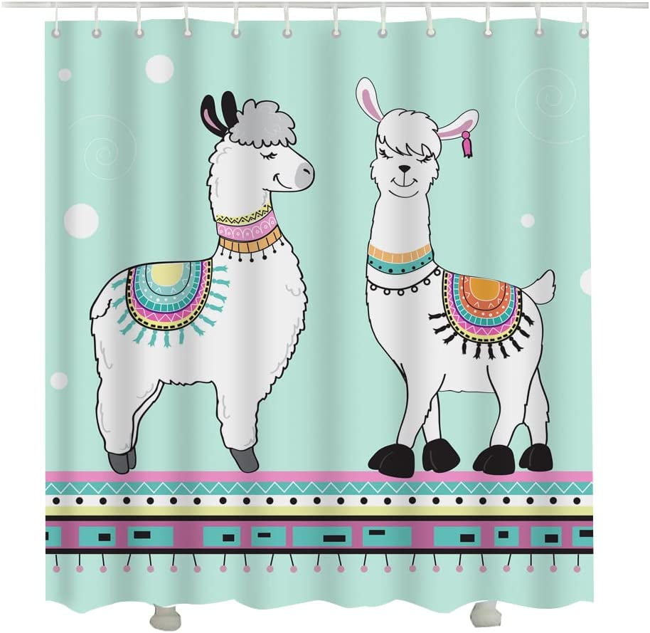 Cute Llamas Shower Curtains For Bathroom 72x72 Inches White Llama Alpaca Green Polyester Fabric Shower Curtains Set With 12 Hooks Walmart Com